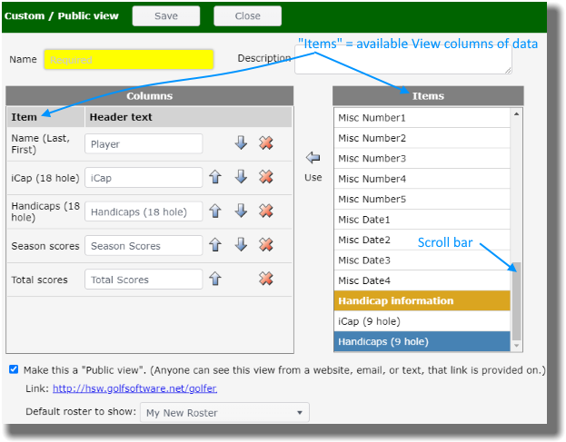 Note: Public views, i.e., those where the link is placed on a website, default to sorting alphabetically by last name.