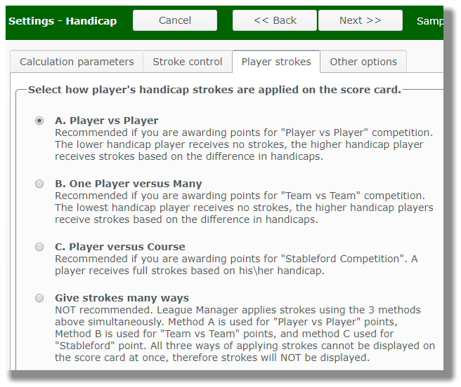 Verify how you wish to have strokes applied on the scorecard