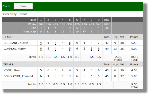 If there are any questions about scoring and points, the completed scorecard view is helpful in resolving the issue.