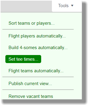 - Click the third item from the top: Set tee times...